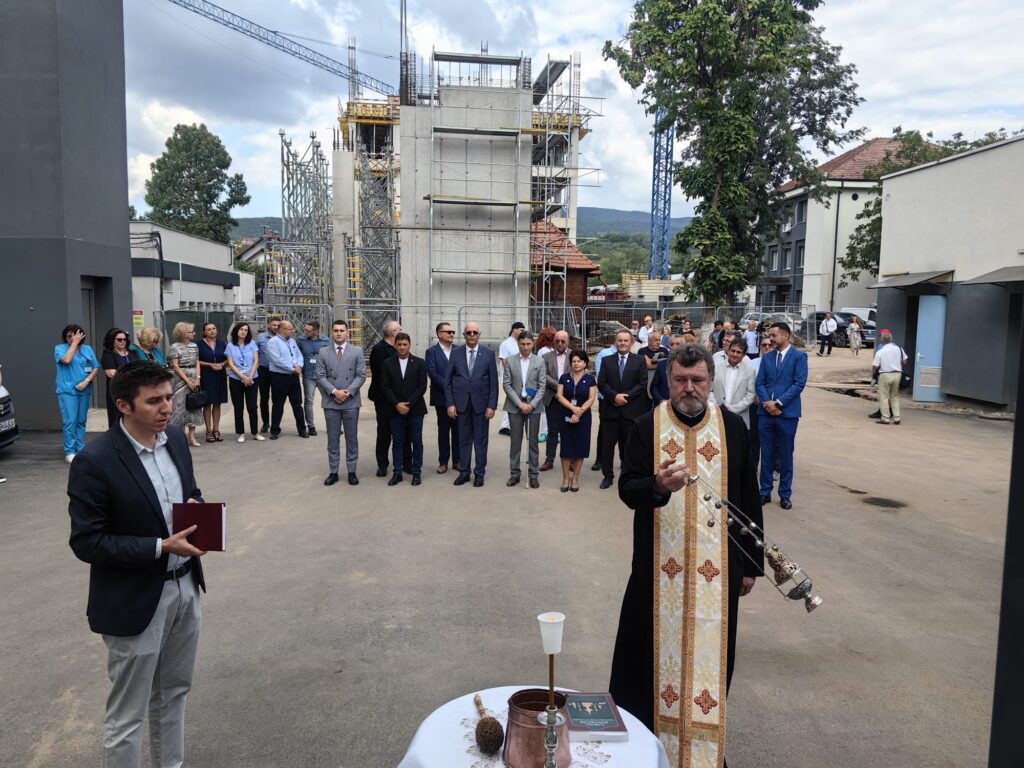 De asemenea, o vizită de lucru a fost efectuată și pe șantierul noului corp de spital, unde vor funcționa secțiile de oncologie, radioterapie, cu specialitățile de hematologie și îngrijiri paliative, respectiv secția de cardiologie intervențională. Construcția va fi una modernă, cu 5 etaje și heliport în partea superioară. În total vor fi 90 de paturi, cabinete de consultații și săli de tratamente. Clădirea va fi dotată cu aparatură medicală performantă, inclusiv un angiograf și două aparate de radioterapie.